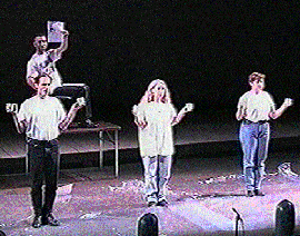 Performed by Eric Pot, Jennifer Shepard, Todd Ristau, and Ashley Sovern The word SPLASH indicates that the actor has splashed the contents of the