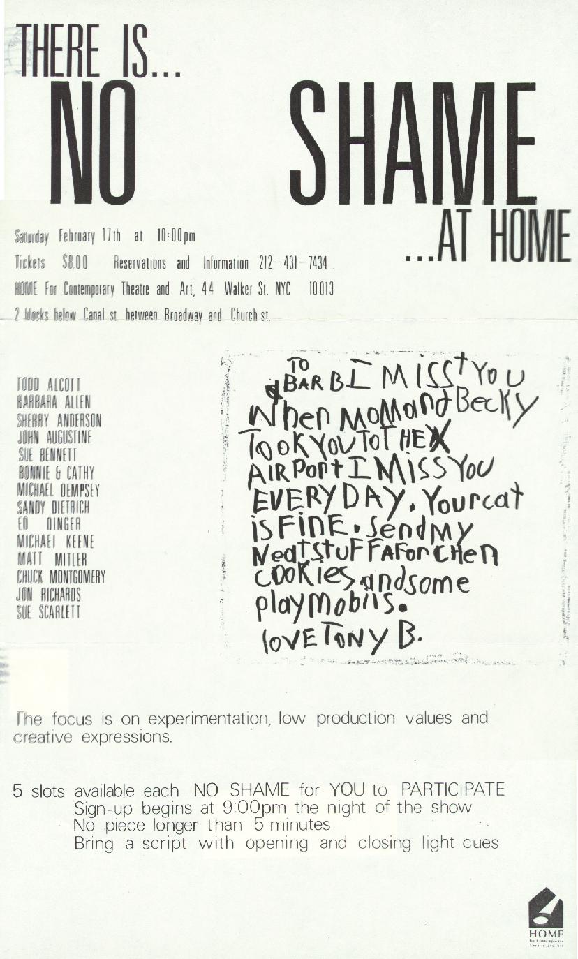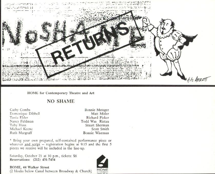 "Graffiti Shakespeare (No Shame Returns)" postcard for October 21, 1989 show
