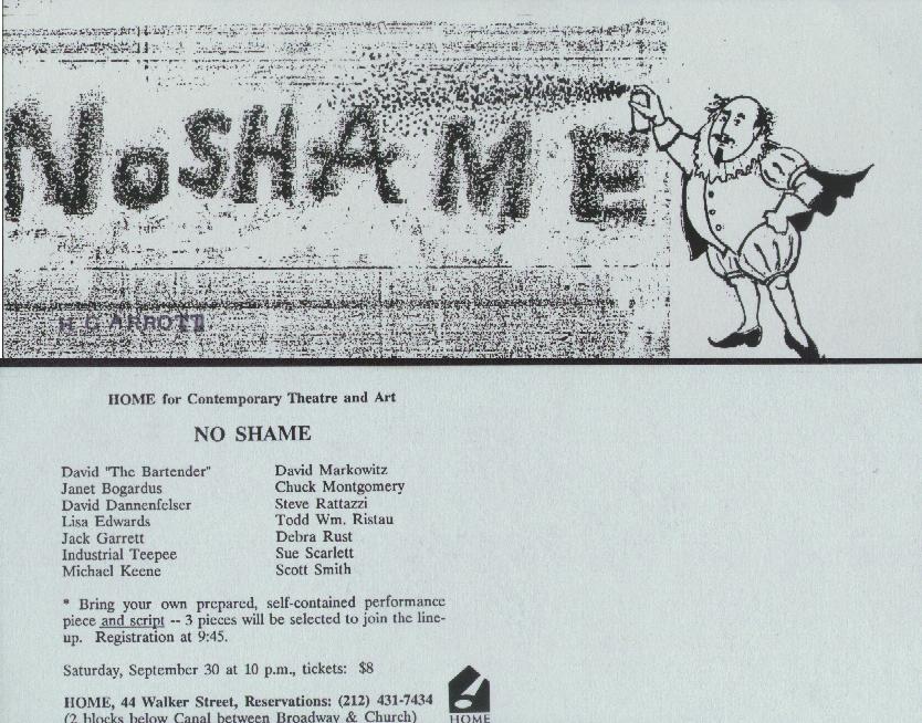 "Graffiti Shakespeare" postcard for September 30, 1989 show