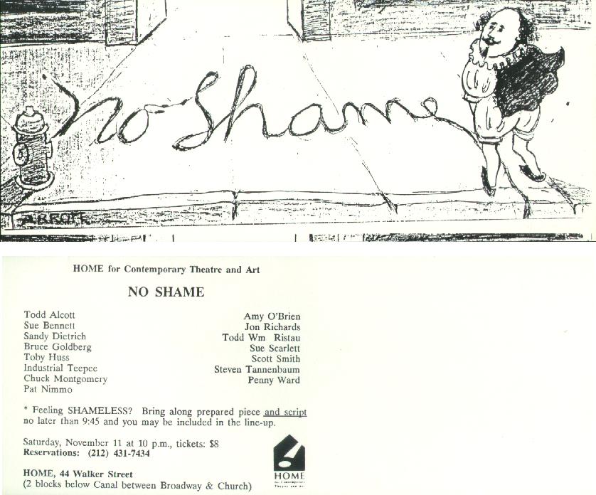 "Pissing Shakespeare" postcard for November 11, 1989 show