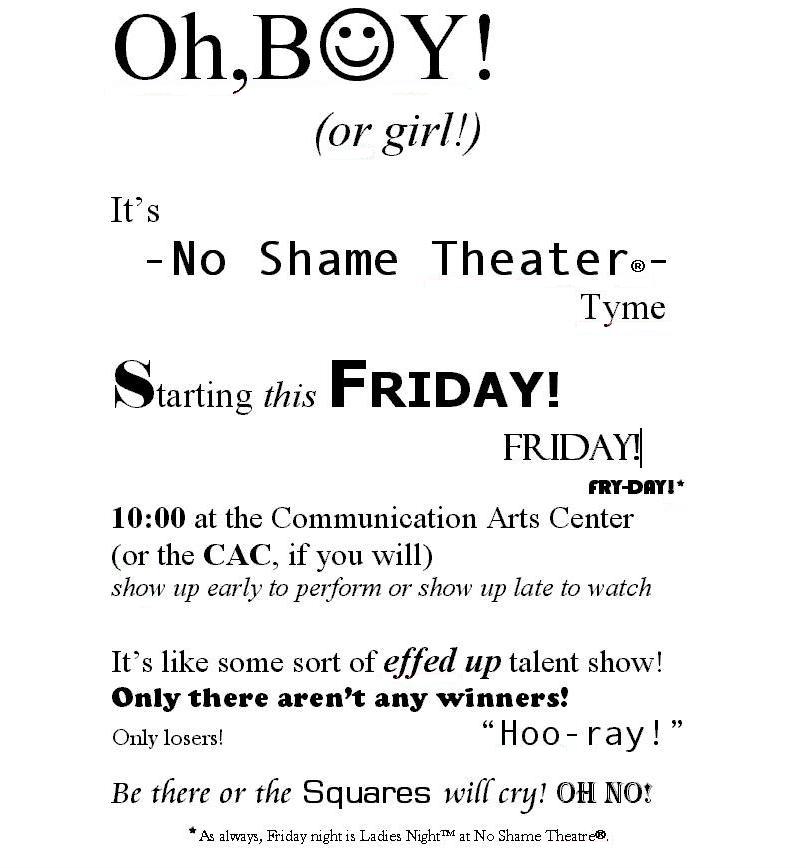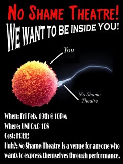 "Nothing quite hits the spot like a hot cup of No Shame" poster. (September 29, 2006)
