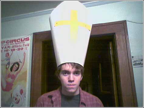 Andy Schroeder as the Popeman for A UNI Religion Minor's Passion Play