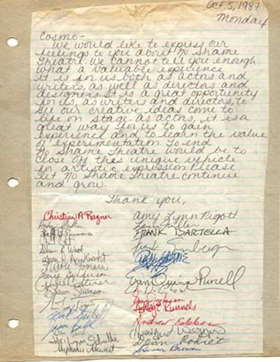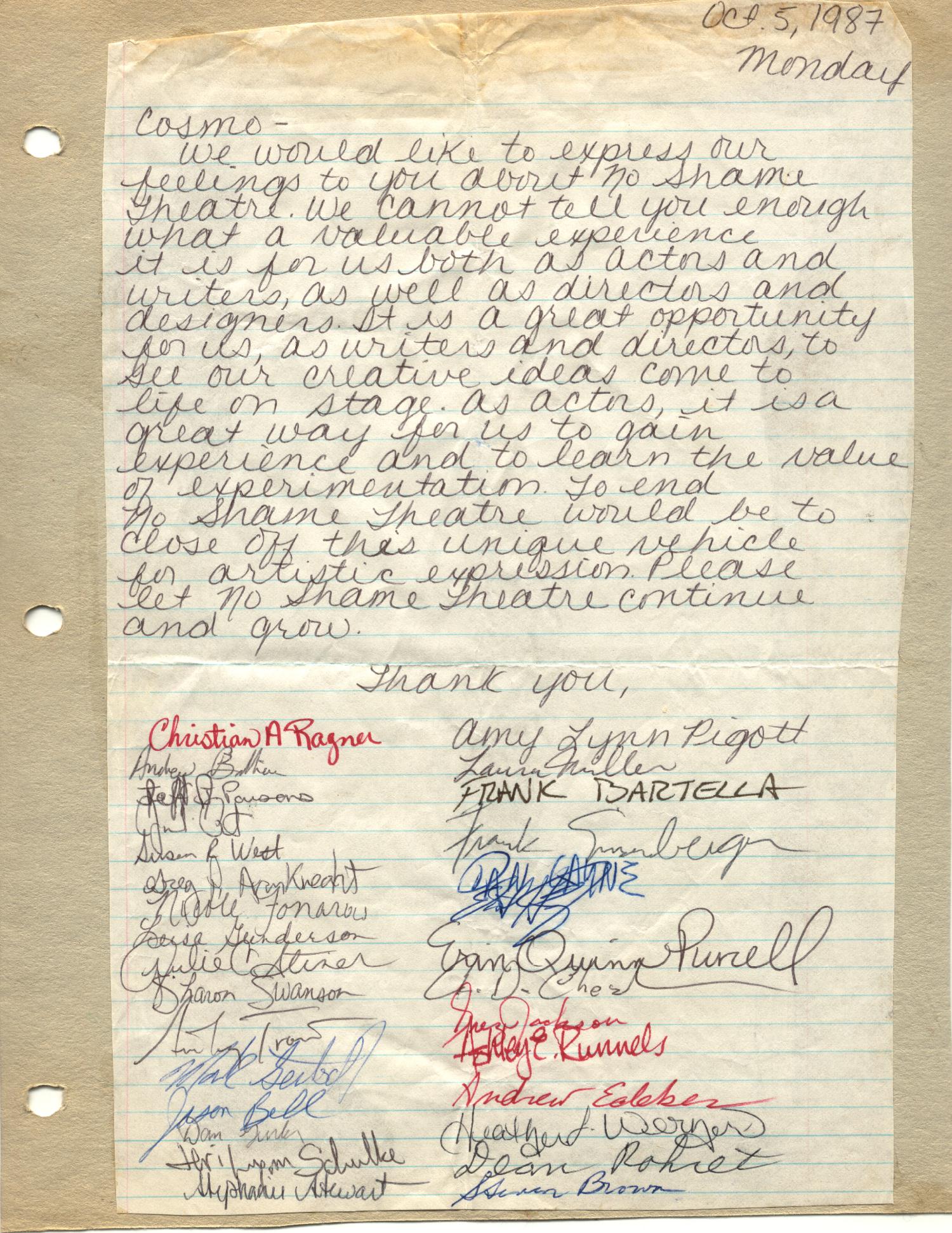 Pip Gordon Sondra A. Maze Mark Lohman Michael Graziano Scott B. Smith Katreen Hardt Todd Wm. Ristau Todd McNerney Rosa Carl Waisenan (sp?) Bill Albert Inger Hatlen Christopher Holland Dai Parker-Gwilliam Michele Sohner Patrick Sean Clark Steve Holmes Cowan (?) Sheela Kangal Brian E. Rochlin Gina Kaufmann Marjori M. Webb (sp?) Catherine M. Ryan Dna Dement Ann Van Elswijk Tom Geborowski |