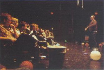 Begun in 1986 by Todd Ristau (M.F.A. '91) and Stan Ruth (B.A. '87), No Shame Theatre staged its first performances in the back of a pick-up truck lit by a motorcycle headlight. Today the weekly shows fill the 144-seat Theatre B. Its offbeat spontaneity has spawned No Shames in cities nationwide, such as Chicago, Cleveland, New York, Miami, and even Fairbanks, Alaska.