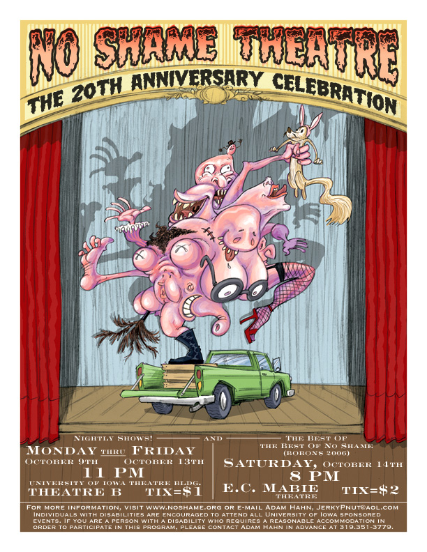 No Shame Theatre The 20th Anniversary Celebration October 9th-14th, 2006 poster design by Lee-Roy preliminary sketch
