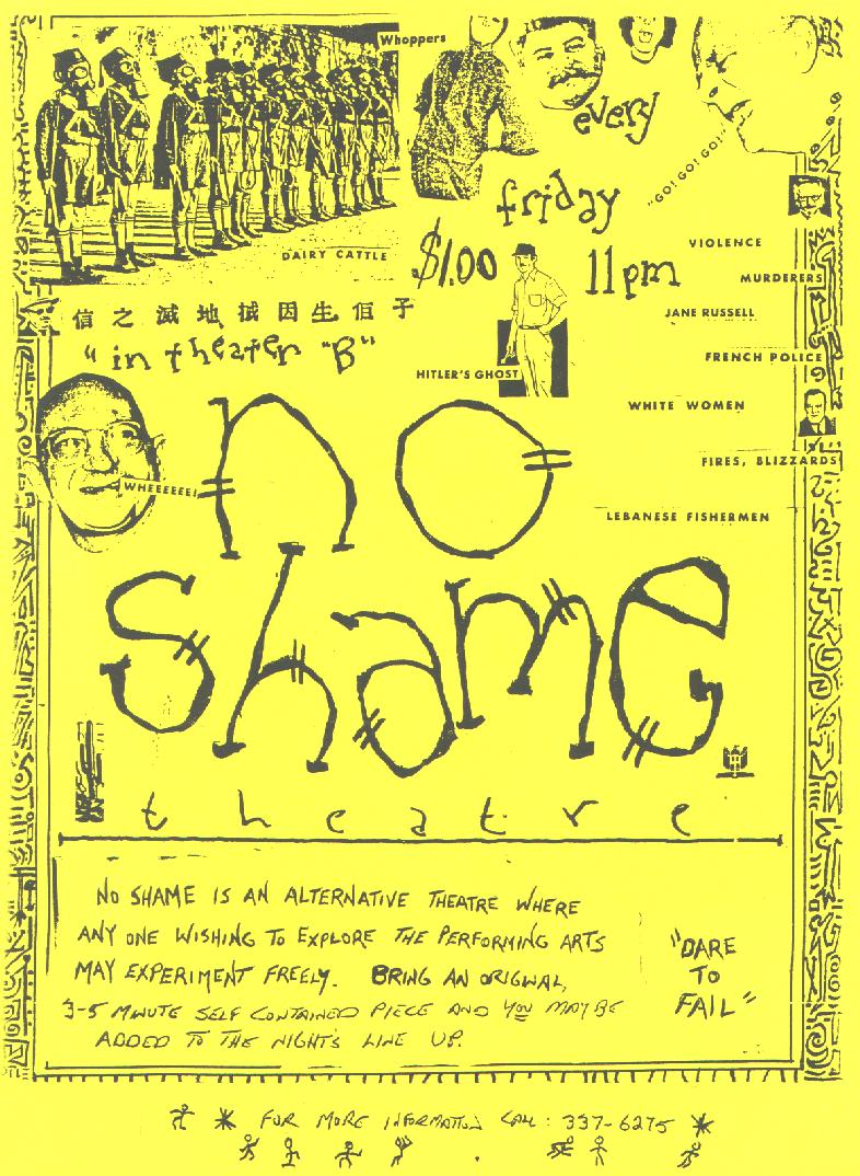 "The Best of No Shame Theatre" Poster design by Jeff Goode. (April 21 & 22, 1989)