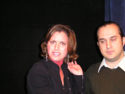 I mumbled throughout the scene and always faced upstage. I also flirted with the woman the whole time rather than answering any of the couple's questions about the house. At one point I sidestepped over to Jon Price - who was there to play interstitial music during the whole show - and asked him to play something romantic.