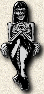 Abigail: In a pool of blood lay Herman, an ornate dagger protruding from his back. His gun lay about three feet from his hand. Torches were ringing the area and nine black robed figures encircled a carved stone altar upon which the Skunk River Mermaid lay. The altar depicted some obscene fish god with a mass of tentacles supporting its body, each tentacle covered with either suckers or eyes. The cultists were chanting, not in German but some strange tongue which might have been the language of fish, for it made me feel slime covered and cold just to hear it.